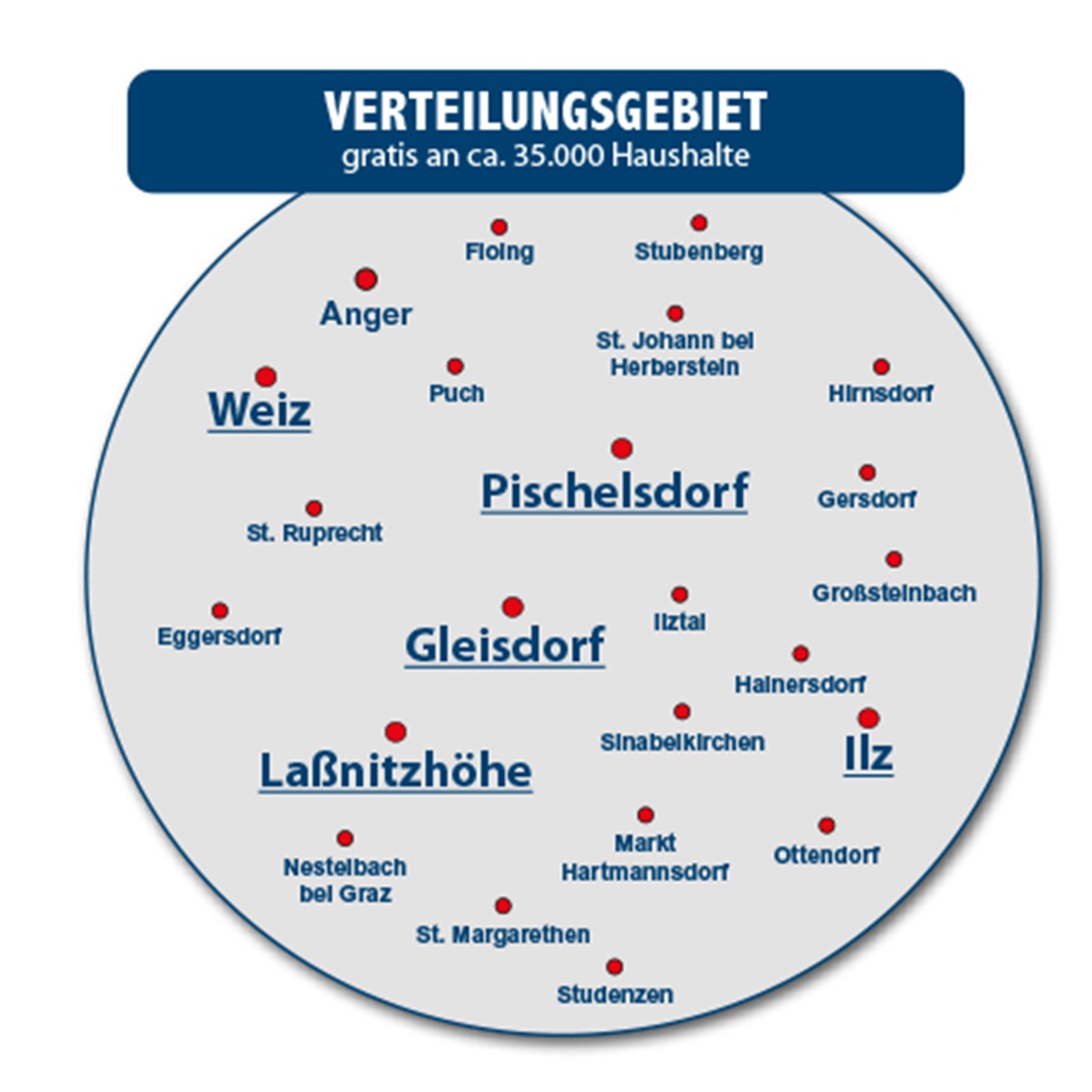 Gleisdorf, Ludersdorf-Wilfersdorf, Eggersdorf bei Graz, Laßnitzthal, Nestelbach bei Graz, Labuch, Hofstätten an der Raab, St. Margarethen an der Raab, Zöbing, Markt Hartmannsdorf, Oed, Pöllau bei Gleisdorf, Nestelbach im Ilztal, Ilz, Schweinz, Sinabelkirchen, Untergroßau, Albersdorf, Wollsdorf, Großpesendorf, Pischelsdorf am Kulm, Gersdorf an der Feistritz, Kroisbach, Hartl, Blaindorf, Hirnsdorf, Kaibing, Fieberbründl, Untertiefenbach, Obertiefenbach, Vockenberg, Stubenberg, Siegersdorf, St. Johann bei Herberstein, Rohrbach am Kulm, Elz, Etzersdorf, Rollsdorf, Arndorf bei St. Ruprecht, St. Ruprecht an der Raab, Mitterdorf an der Raab, Unterfladnitz, Preding, Krottendorf, Weiz, Peesen, Feistritz bei Anger, Lebing, Anger, Hartberg, Ebersdorf, Kaindorf, Bad Waltersdorf, Pöllau bei Hartberg.
